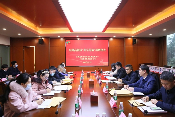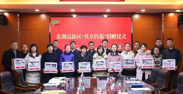 2月9日,东湖高新区新时代文明实践中心、人福医药集团联合向当代、湾郡、金地、景源里等社区新时代文明实践站捐赠一批“共享药箱”,助力幸福社区建设。东湖高新区党工委宣传部、文明办,人福医药集团及高新区部分街道、社区负责人参加捐赠仪式。