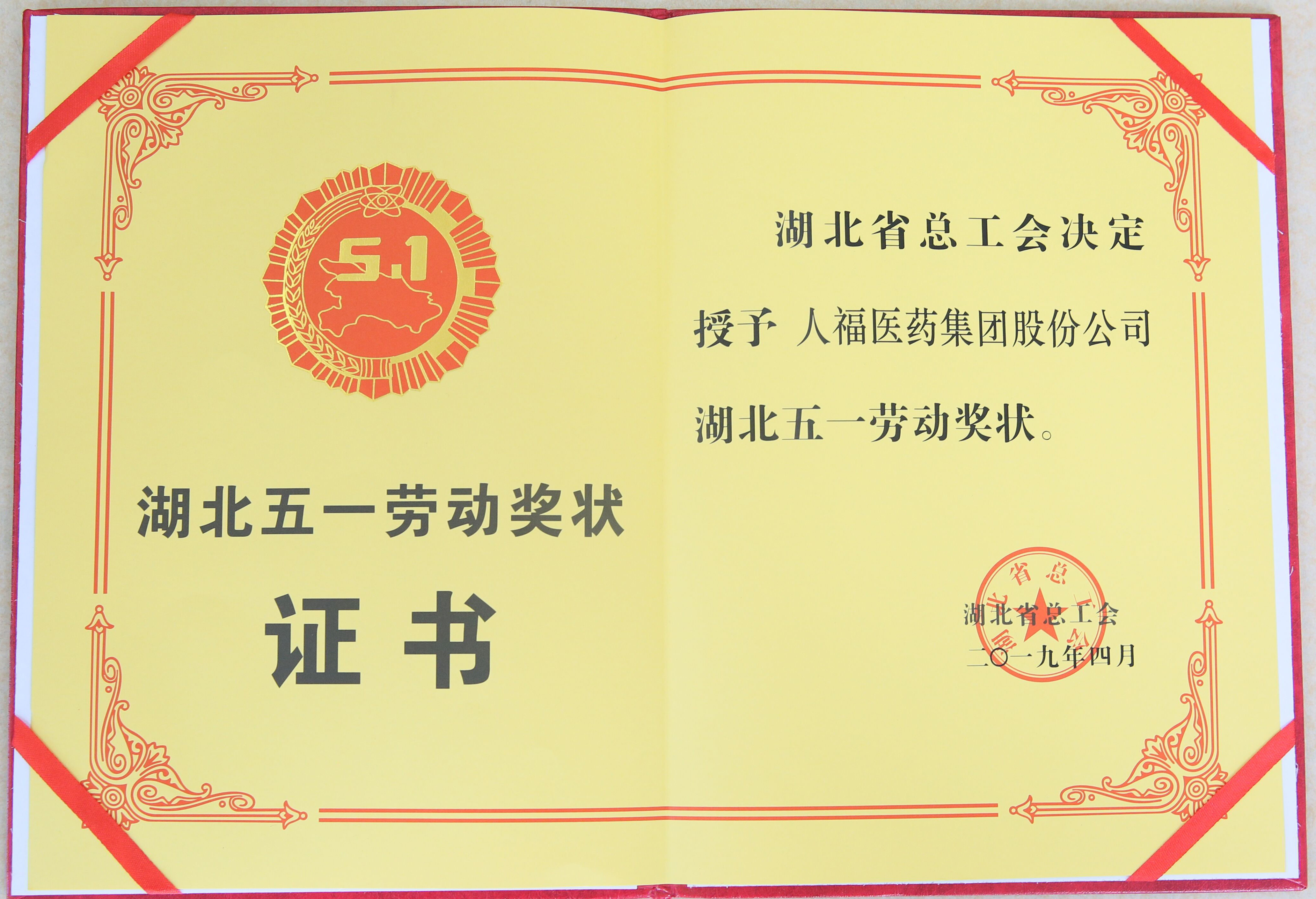 4月24日上午,湖北省庆祝“五一”国际劳动节暨表彰大会在洪山礼堂举行,宣读了《湖北省总工会关于表彰2019年湖北五一劳动奖和湖北省工人先锋号的决定》,并向获奖的先进集体和先进个人代表颁奖。人福医药集团荣获“湖北五一劳动奖状”。