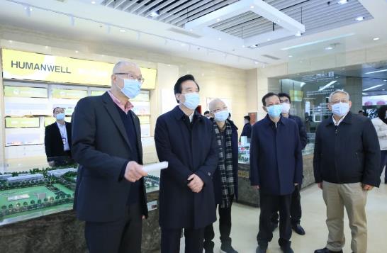 2月25日,省政协主席黄楚平、省政协秘书长翟天山一行深入人福医药集团,围绕贯彻落实近期省委重要会议和省两会精神进行调研,并为住鄂全国政协委员参加全国两会做准备。黄楚平勉励委员增强使命意识,立足岗位、发挥优势、担当尽责,做合格的人民政协制度参与者、实践者、推动者,为我省开局“十四五”、开启新征程贡献智慧力量。当代集团党委书记、董事长、人福医药集团创始人艾路明,全国人大代表、民建湖北省副主委、当代集团董事、人福医药集团董事周汉生,省政协常委、农工党湖北省委会副主委、人福医药集团总裁邓霞飞陪同调研。